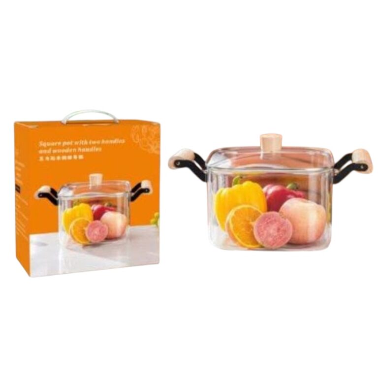 قدر طبخ زجاجي بمقبض خشبي 4 لتر.