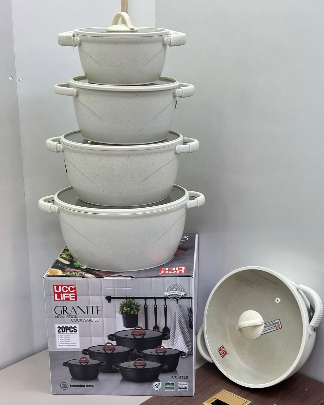 أواني طهي بالجرانيت من UCC Life، مكونة من 10 قطع. مصنوعة من الألومنيوم المتين مع طلاء جرانيت غير لاصق.