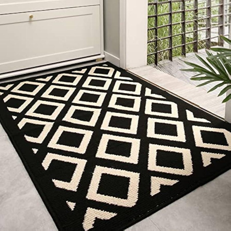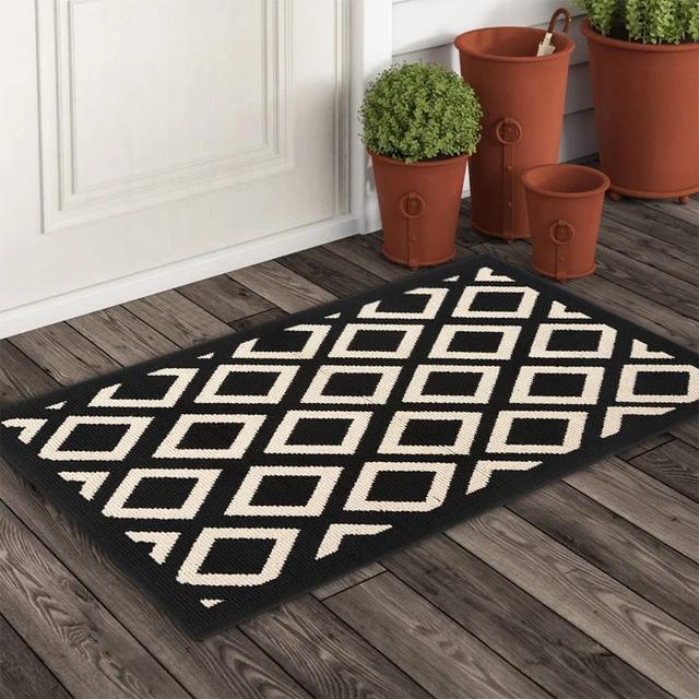 سجادة ارضية بتصميم رقعة الشطرنج باللونين الابيض والاسود، سجادة ماصة مانعة للانزلاق للمدخل، مقاومة للغبار والاهتراء، مناسبة لغرف النوم وغرفة المعيشة والمطبخ الحجم 80 * 120