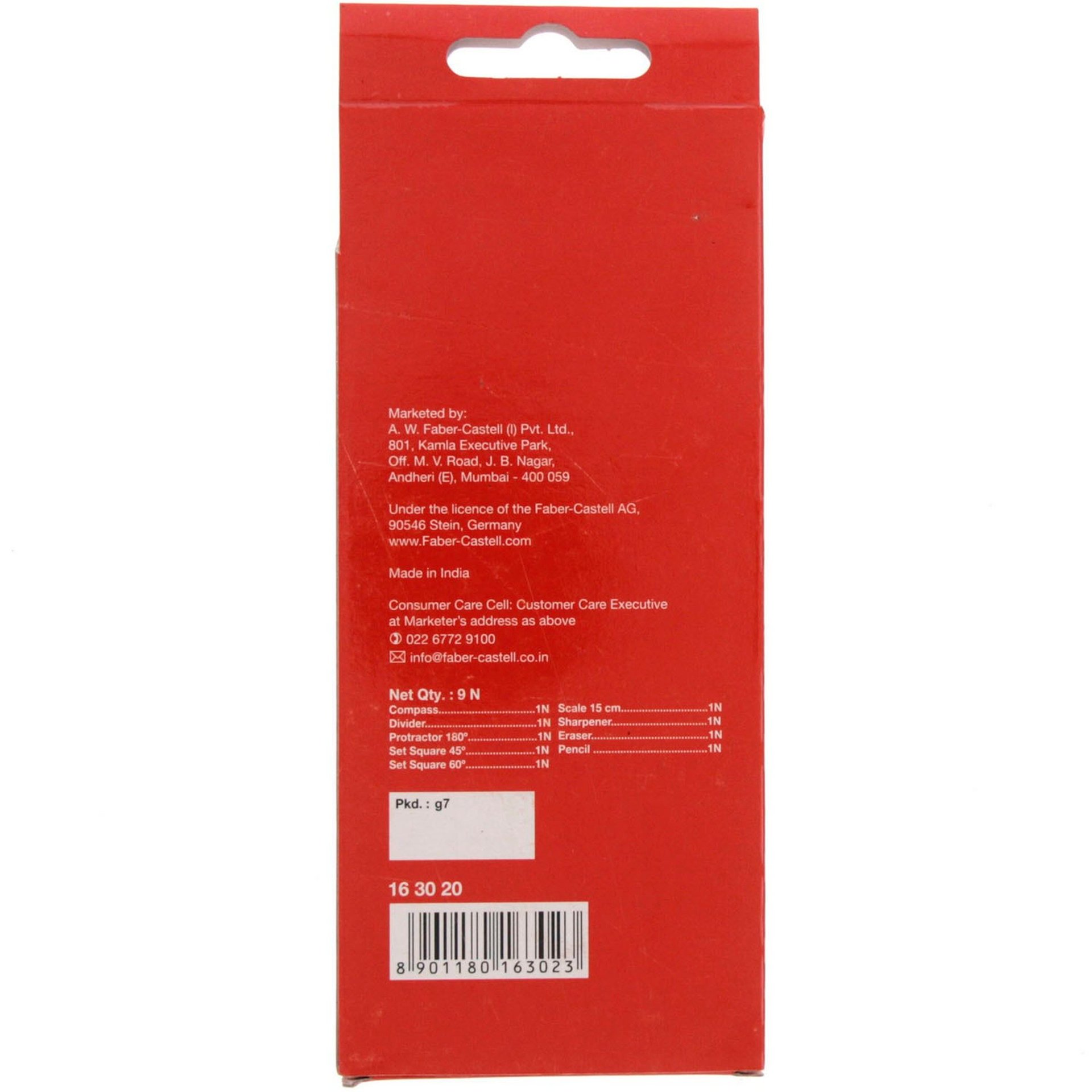 - المجموعة تتكون من 9 قطع وتتضمن أدوات أساسية مثل الفرجار والمسطرة والمنقلة.