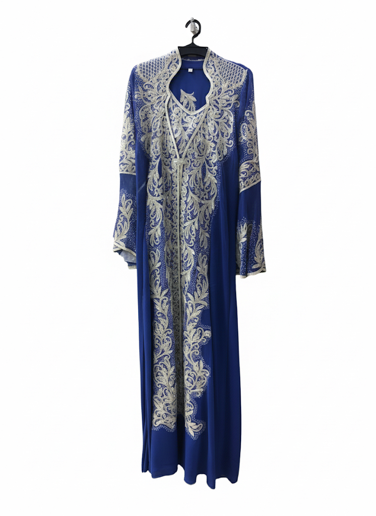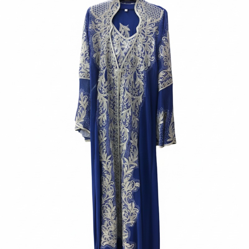 اللون: الازرق / تطريز فضي