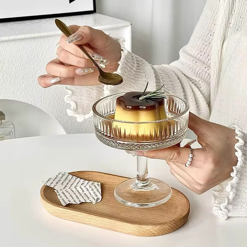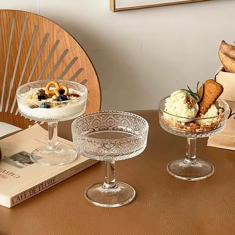 - تتميز الكؤوس بتصميم قديم (Vintage) وزخارف محفورة حول الحافة.