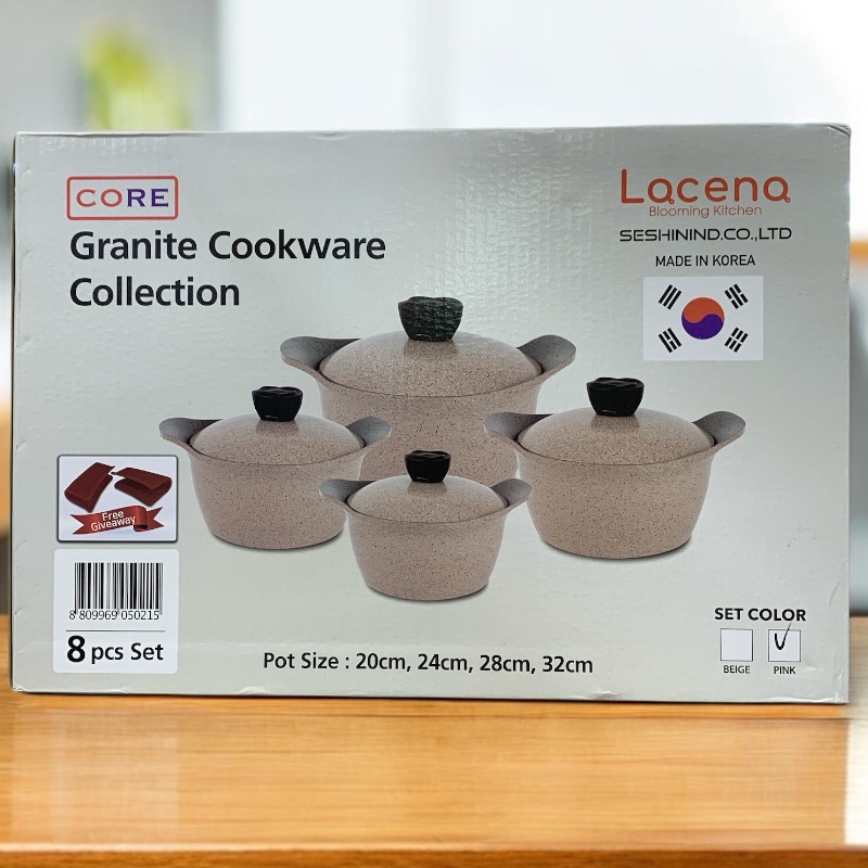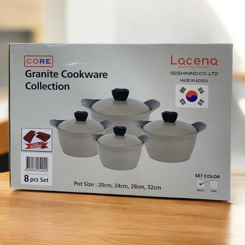 طقم أواني طهي كور جرانيت من Lacena مكون من 8 قطع.