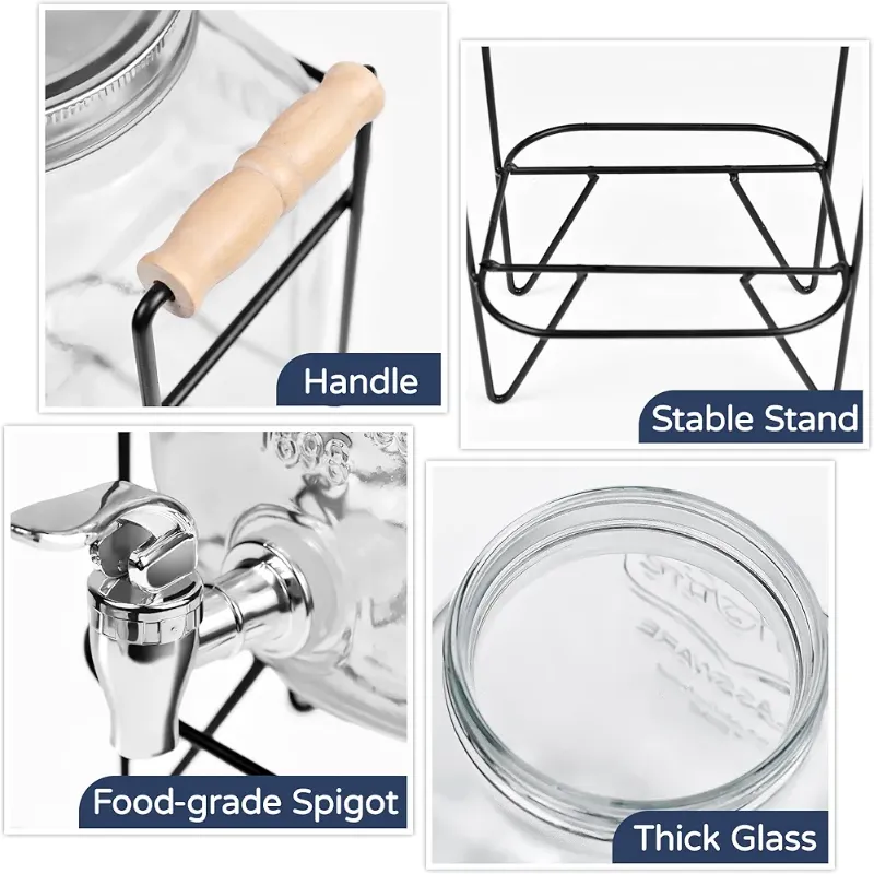 موزع مشروبات زجاجي مع عروة وحامل، برطمان عصير شفاف لعصير الليمون والعصير وفحم الكوك والحلوى والمشروبات